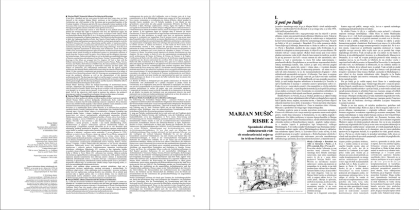 Er ging aus Plečniks Architekturschule hervor und setzte sich als Projektant durch (Gestaltung des Stadttors Gorenja oder Ljubljanska vrata, der Gedenkloge und der Studienbibliothek sowie des Hauptplatzes in Novo mesto, Renovierung und Revitalisierung des im Zweiten Weltkrieg zerstörten Schlosses Otočec usw.) Einen internationalen Namen machte er sich als Architekt-Konservator bedeutendster historischer Architekturen (Peristil des Diokletian-Palastes in Split, Euphrasius-Basilika in Poreč, Sophienkriche in Ohrid oder Rettung der Denkmäler des alten Nubien sowie Ägyptens im Rahmen der UNESCO). Er war Theoretiker und Verfasser von vielen Artikeln, Abhandlungen und Architekturbüchern sowie Architekturgeschichtsbüchern. Er war aber auch ein Klassiker der Architekturzeichnung. Diese zeichnet sich durch ein breit gestreutes Erbe aus; von den wichtigsten der weltweit bekannten Denkmäler bis zur nur scheinbar bescheidenen anonymen Volksbaukunst. Aus dem reichen und bunten Opus der Architekturzeichnungen, in denen er mit wissenschaftlicher Genauigkeit die Merkmale der Architekturen enthüllte, die er mit Talent und mit persönlicher Künstlernote abbildete, wählten wir für das erste Album (1994) Motive des Schlosses Dornava aus, seine Geburtsstadt Novo mesto mit den unentbehrlichen Heuharfen, das Erbe Istriens, Dubrovniks und Ohrids sowie vorzüglich gezeichnete Blätter mit der Abbildung von ausgewählten Denkmälern und Ambienten in Venedig, Verona, Florenz und Rom. Im vorliegenden Album wurden die Architekturzeichnungen in fünf Kapitel geordnet: Italienreise (I) mit meisterhaften Abbildungen der Architekturmotive Veneziens, Paduas, Veronas, Florenz‘ und Neapels, die Festungen Dubrovniks (II), die berühmte Verteidigungsarchitektur, die komplementär durch die hervorragenden Zeichnungen von Sommerhäusern und ihren Parks ergänzt wird, Dubrovniks Schlösser (III), Architektur Mazedoniens (IV), regionale Volkskunst, die Marjan Mušič anlässlich der Renovierung der Sophienkirche in Ohrid genau kennenlernte, sowie extrem anspruchsvolle Rekonstruktionsversuche der Stadt Novo mesto aus der Zeit um 1600 (V). Die Zeichnungen werden von Texten begleitet, die die Bindung des Architekten an die ausgewählten Architekturmotive und ihre Charakteristiken aufdecken. Ebenso zeigen sie die Mehrschichtigkeit des Entwurfs, des Motivwählens, des Herausschälens des Architekturwesens des vorgestellten Motivs, das Verfahren und die Meisterschaft des Abbildens sowie die Details der Zeichentechnik und die Geheimnisse der gewünschtenWirkung von ausgewählten Architekturzeichnungen.
