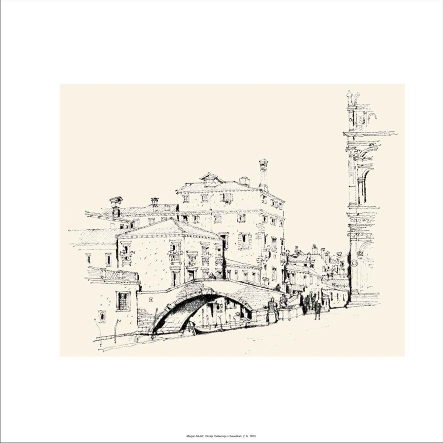Mušičs Zeichnungen zeichnen sich durch gute Kenntnis der Architekturgeschichte aus, durch den beschrittenen Weg vom Konzipieren der Perspektive, der Aufnahme und der Vorstellung. Was die Ernsthaftigkeit, die Verantwortung und Ethik der Motivwahl betrifft, beherrscht er souverän die Blattfläche, scheinbar ohne den betont persönlichen Architektenanteil. Dieser ist aber natürlich in dem Gesamtbild und in jedem Detail erkennbar. Bei aller Objektivität des dargestellten Stoffes stellen die Zeichnungen des Architekten zugleich auch die von einem zurückhaltenden persönlichen Grundgefühl beherrschten Errungenschaften einer schöpferischen Hand dar.
