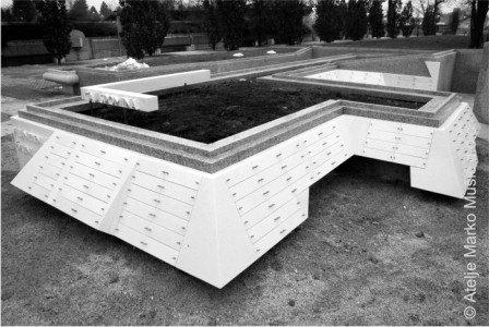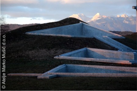 Subtly embedded in the nature sleeps The remembrance haven in the shelter of mighty oaks, talking with birds and watching the timelessness of the majestic mountains stretching over burial mounds of Ljubljana's Žale cemetery green park rim. The cross-section of lives, the cross-section of burial mounds, is carefully arranged in the infinity of the meanders, which co-create joined space of remembrance. In the meanders, the names of the deceased are humbly carved in stone. The remembrance haven presents continuation of first remembrance oasis located in the northern part of cemetery, also by The Path of Oaks.