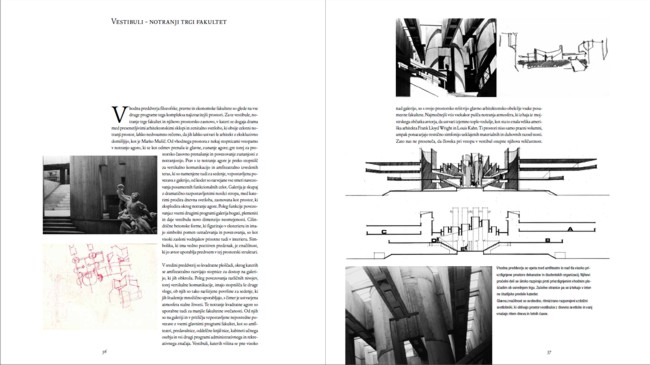 Zleknjena kompozicija cerkve sv. Klementa v Ohridu se postopno, vse bolj kipeče vzpenja proti najvišjemu, krožno izoblikovanemu poudarku. Podobno je umirjena horizontalna struktura univerzitetnega tkiva, iz katere se prav tako vzpenjajo posamezni pomenski poudarki...